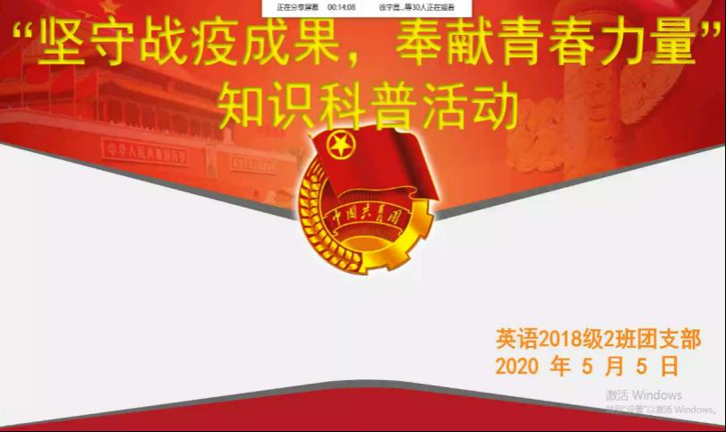 此次主题团日活动依托线上平台展开,各团支部深入贯彻落实习近平总书记关于疫情防控工作的系列重要讲话和指示批示精神,精心策划,积极组织,广泛宣传,认真总结。