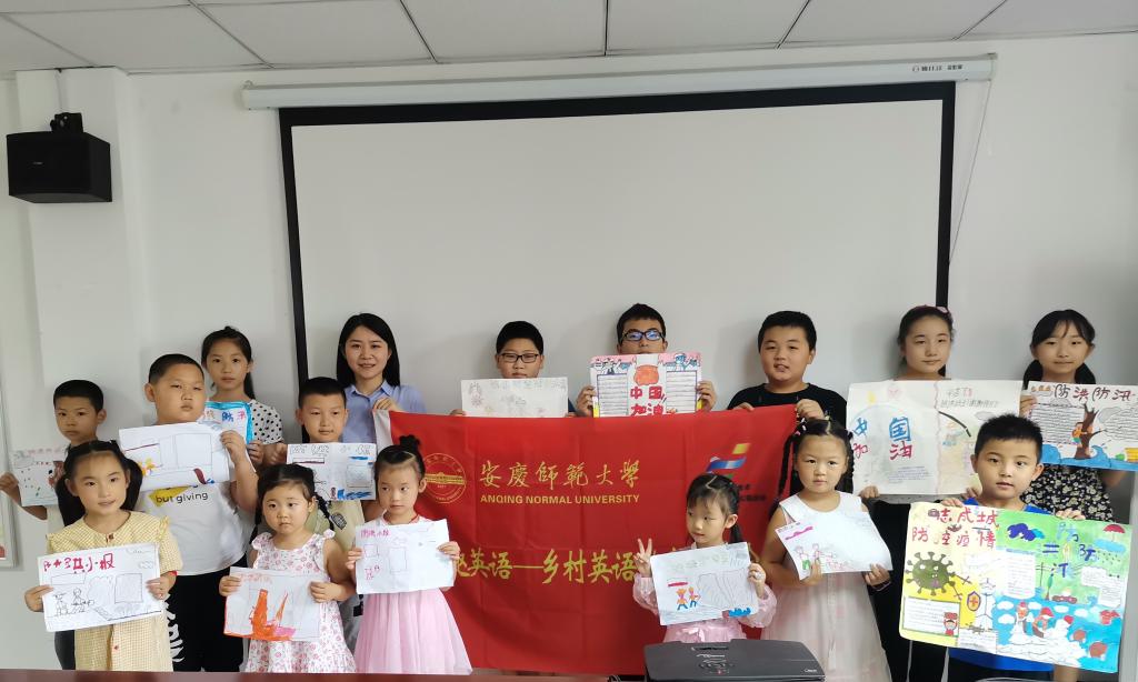 “乡趣英语”三下乡团队来到安庆市宜秀区燎原社区。8月2日,队员们通过线上安全教育宣讲和线下教小朋友画手抄报的模式向抗疫抗洪战士致敬。