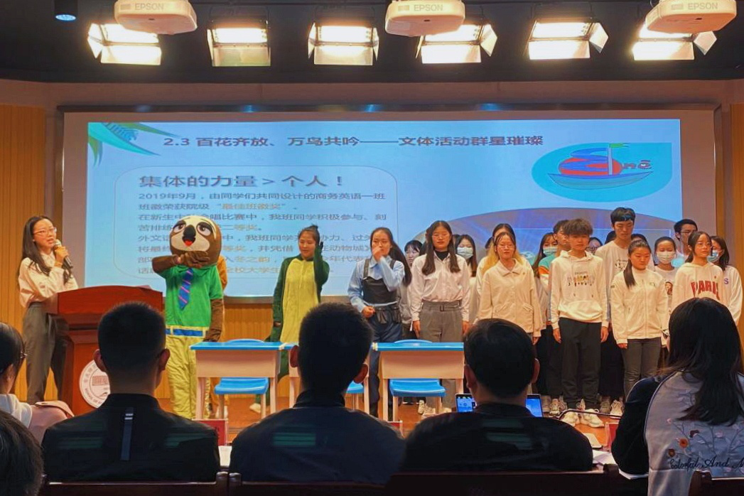 各班级汇报人通过PPT演示和情景表演等多种形式,详细地介绍了班级在学风建设、思想建设、德育建设、创新工作和班级特色等方面的工作情况,全面地展示了班级的精神风貌和工作效果。评委老师结合各班级的汇报展示情况和纸质申报材料进行综合评分,现场公布了海角