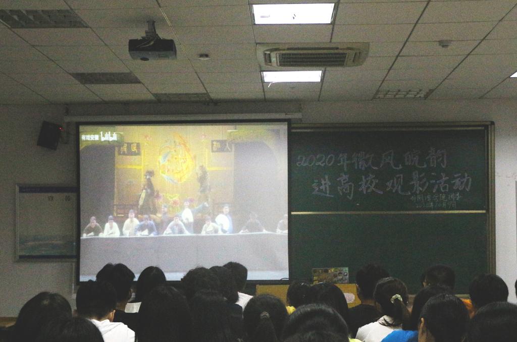 在E201开展“校园大舞台——徽风皖韵进高校”观影活动,学院团委学生会全体到场观看。