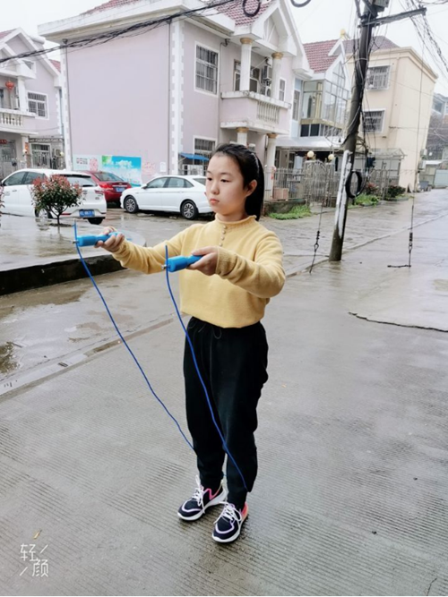 英语专业2019(5)班的董洁参加了跳绳和平板支撑项目。“跳绳一般每分钟150-160次左右,平板支撑每次至少坚持1分钟。”她说,“我热爱运动,疫情期间待在家做运动,一是对身体好,二也能充分利用空闲时间,有时候上网课很累,劳逸结合让我提高了学习效率。”