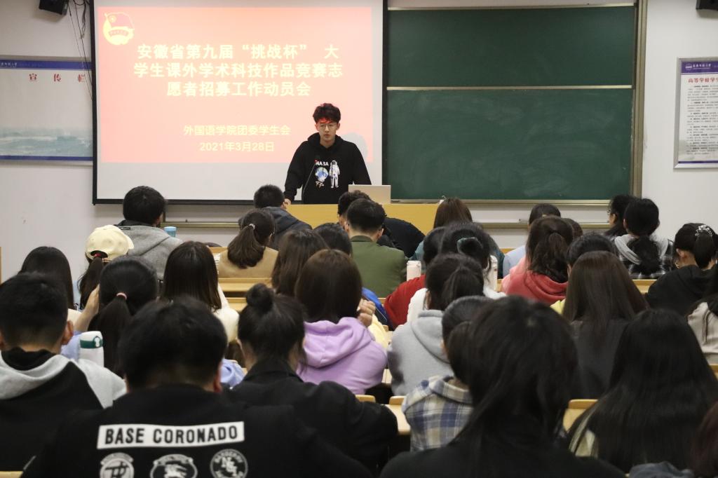 团委学生会在E204召开第九届“挑战杯”竞赛志愿者招募工作动员会议,学生会轮值主席詹海祥、创新创业中心主任莫文逸、19级与20级的各班班长和创新创业委员参加会议,动员会由莫文逸主持。