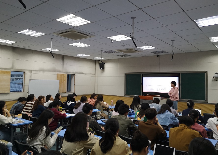 陈亚娜老师从备考心态谈起,她认为保持良好心态,决定了就一定要坚定地走下去。在备考的同时,要注意教师编制信息的获取,紧抓每次考试机会,在考中学、在考中练,做到心无旁骛,专心致志。陈老师建议,在备考初期要制定详细规划——早、中、晚分别复习什么,形成规律的备考作息,她还结合自身经历,详细地介绍了如何高效备考面试,就面试临场准备环节,她提出了四点建议:一是服装大方得体;二是教案书写整齐,设计好板书;三是自信,要保持微笑,要尽情地展现出自己最好的一面;四是要不断调整自己,保持良好心态。陈亚娜老师幽默风趣的语言,缓解了毕业班学生求职过程中的焦虑,现场气氛十分活跃。深入浅出的讲解又让同学们在欢笑之余对如何高效备考教师编制提供给了宝贵的经验。