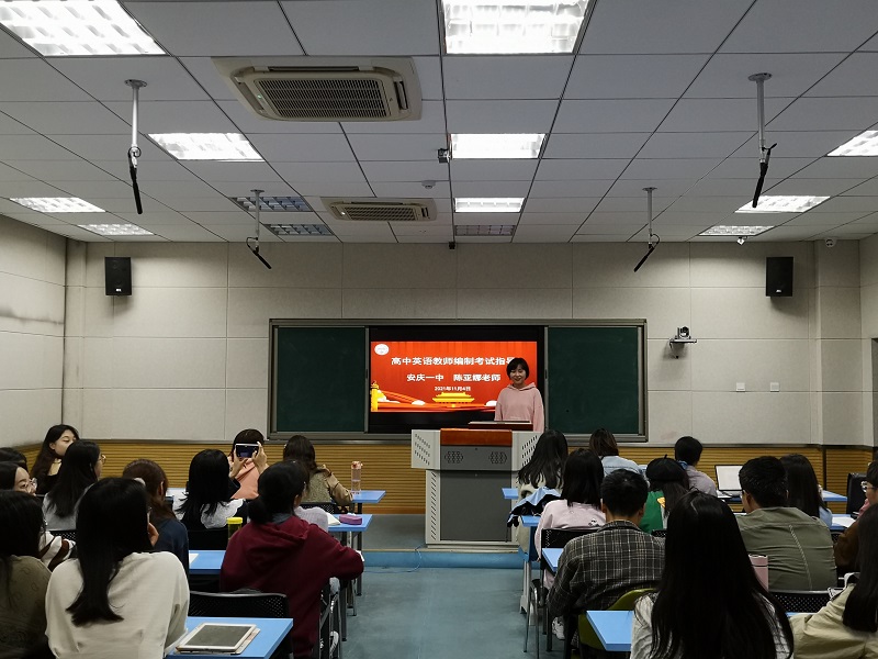 E501举办高中英语教师编制考试指导,特邀安庆一中陈亚娜老师为同学们分享教师编制考试的成功经验。海角