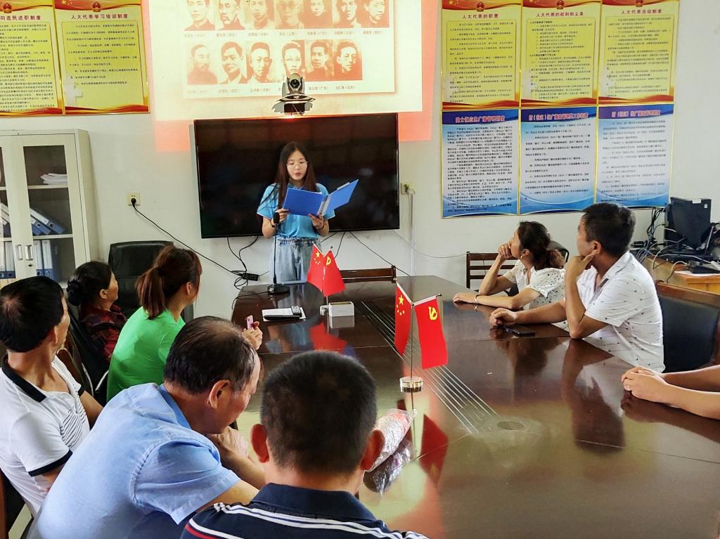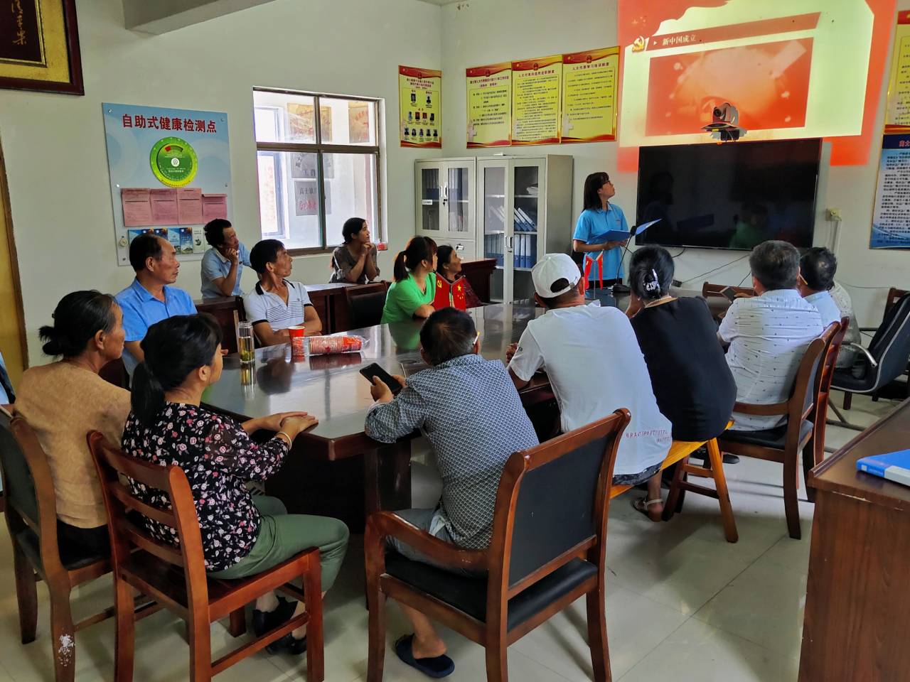 乡村振兴青春行远实践团成员在洗粉村村委会开展理论宣讲。村主任邹卫国组织二十余名村民一同参加了本次宣讲。