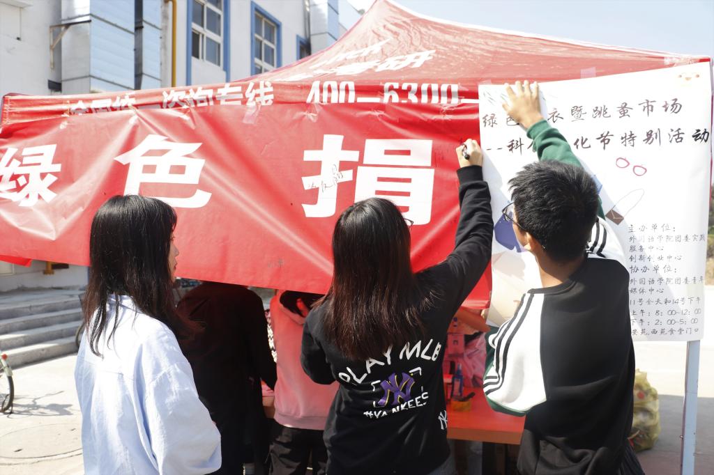 开展了“绿色捐衣暨跳蚤市场”科创文化节特别活动。一周内,活动工作人员在东苑、西苑食堂门口摆摊进行义捐活动,学生们纷纷驻足参与。