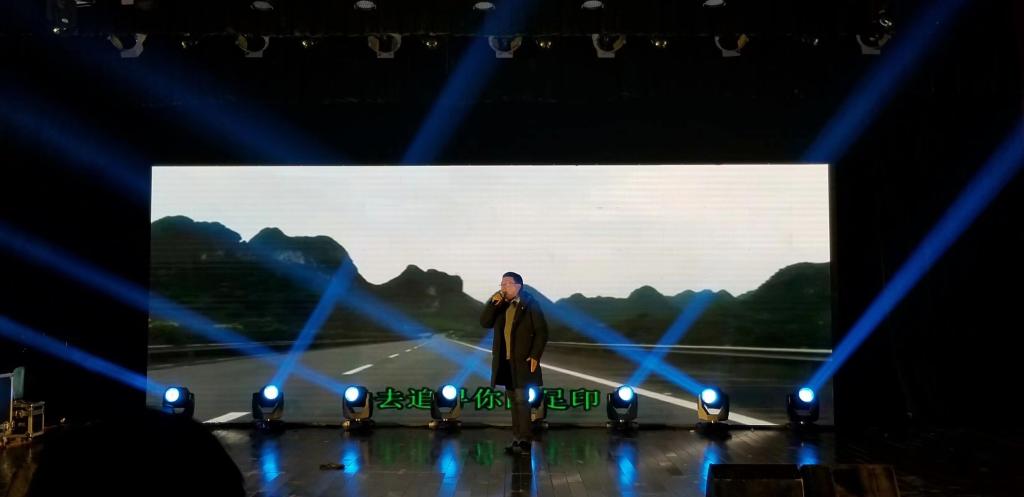党委书记郝涂根演唱了一首降央卓玛的《天边》,浑厚的嗓音征服了台下所有人,现场呐喊、欢呼声不断。