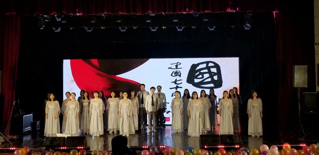 师生中英合唱《我和我的祖国》,悠扬的旋律中饱含了外院师生对祖国的热爱。演唱者之一、2016级翻译专业辅导员刘凡表示,这个节目很有意义,反映出了师生们的家国情怀,立体的展现了海角