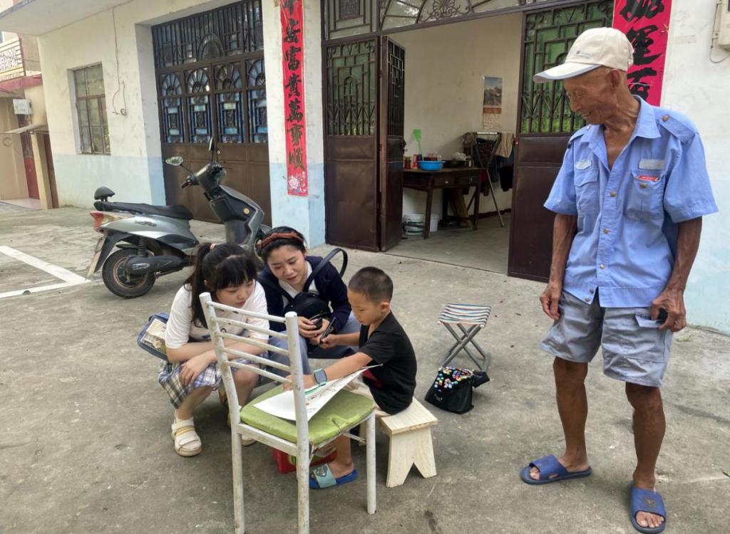 “乡趣英语”三下乡团队正在教小朋友们手语舞蹈《感恩的心》。据悉,大龙山镇政府扶贫办工作人员在5日带领该“乡趣英语”团队成员对燎原社区、百华社区两个社区的贫困家庭、残障家庭进行了走访调查和慰问,并邀请到部分孩子来现场参加活动。