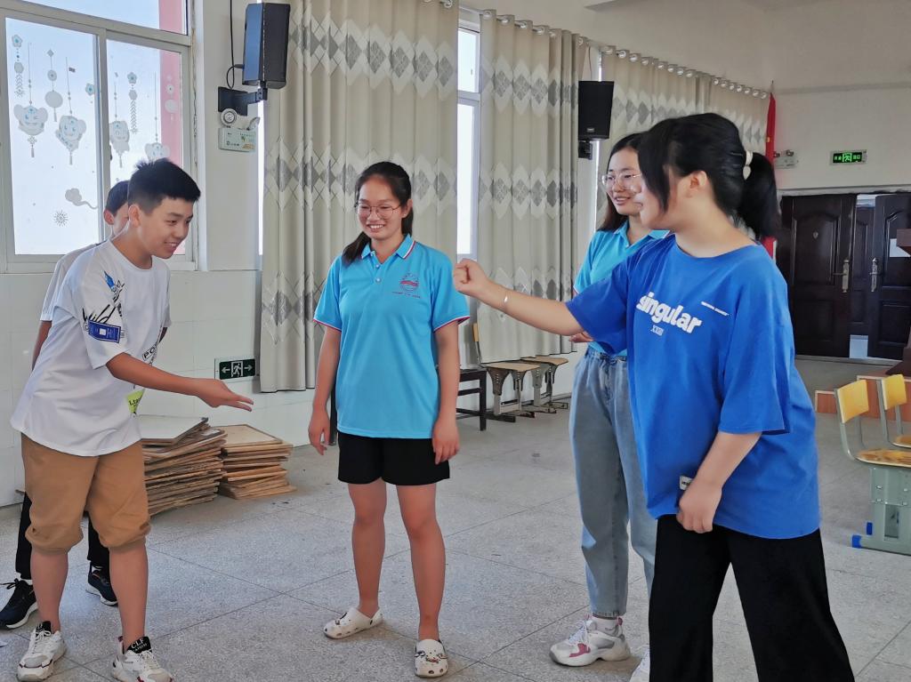 扭转乾坤、你画我猜、叠报纸……7月15日上午,新坝中学传来阵阵欢笑声,原来是安庆师大海角
