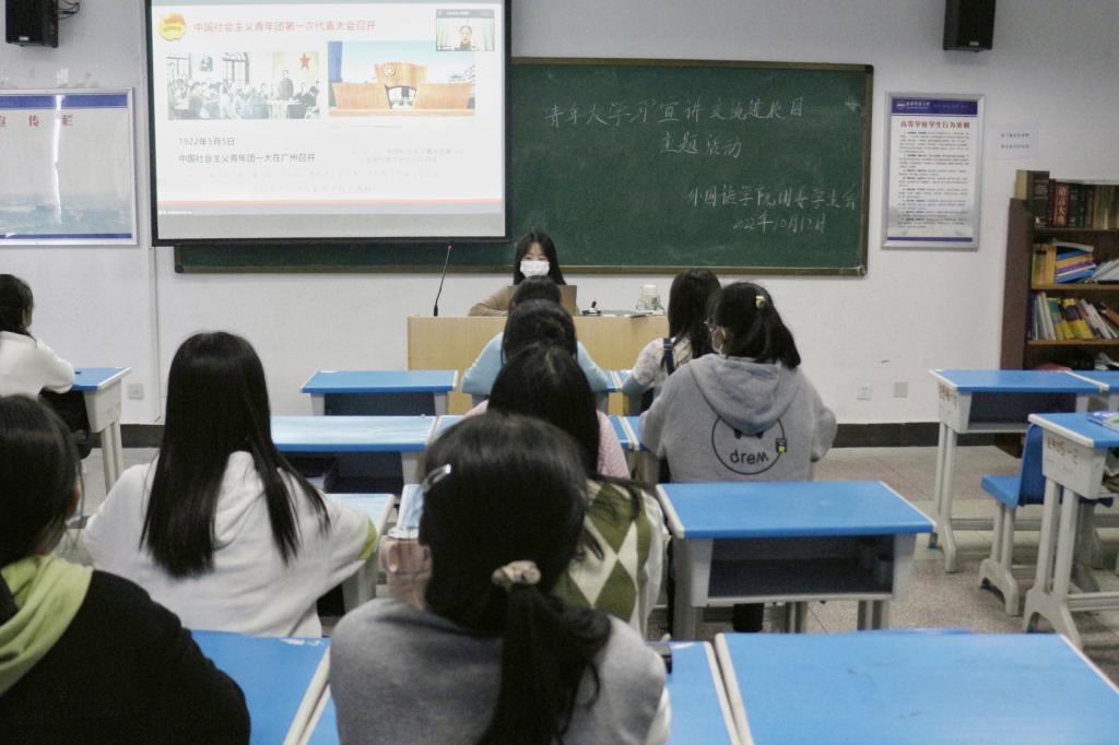 组织百余名青年团员于E406分会场参与“青年大学习”宣讲交流进校园活动。