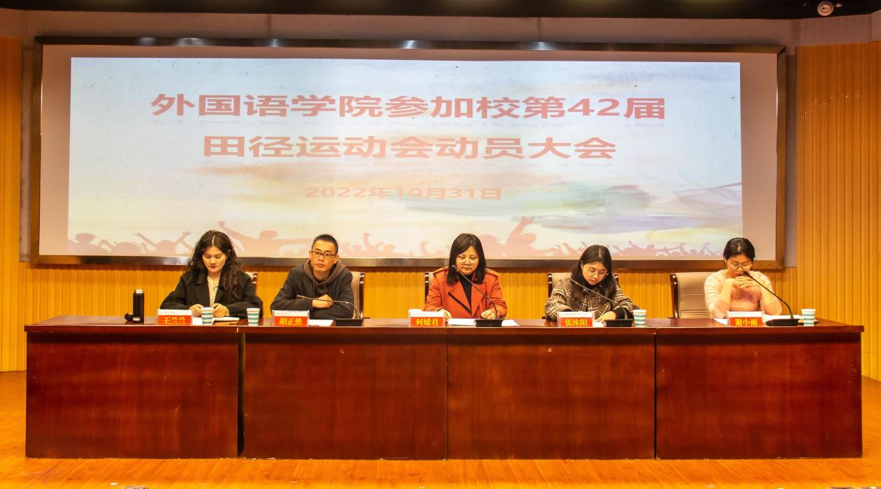 于E503召开2022年秋季田径运动会动员大会。学院党委副书记何媛君、学工组全体老师、全体运动员及学生骨干参会。