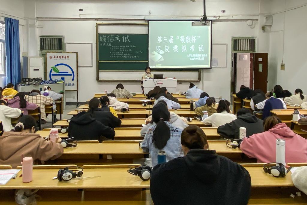 大学生英语爱好者协会举办英语四级模拟考试,分别在龙山校区、菱湖校区设置考场,全校2021级和2022级400余名学生报名参加。