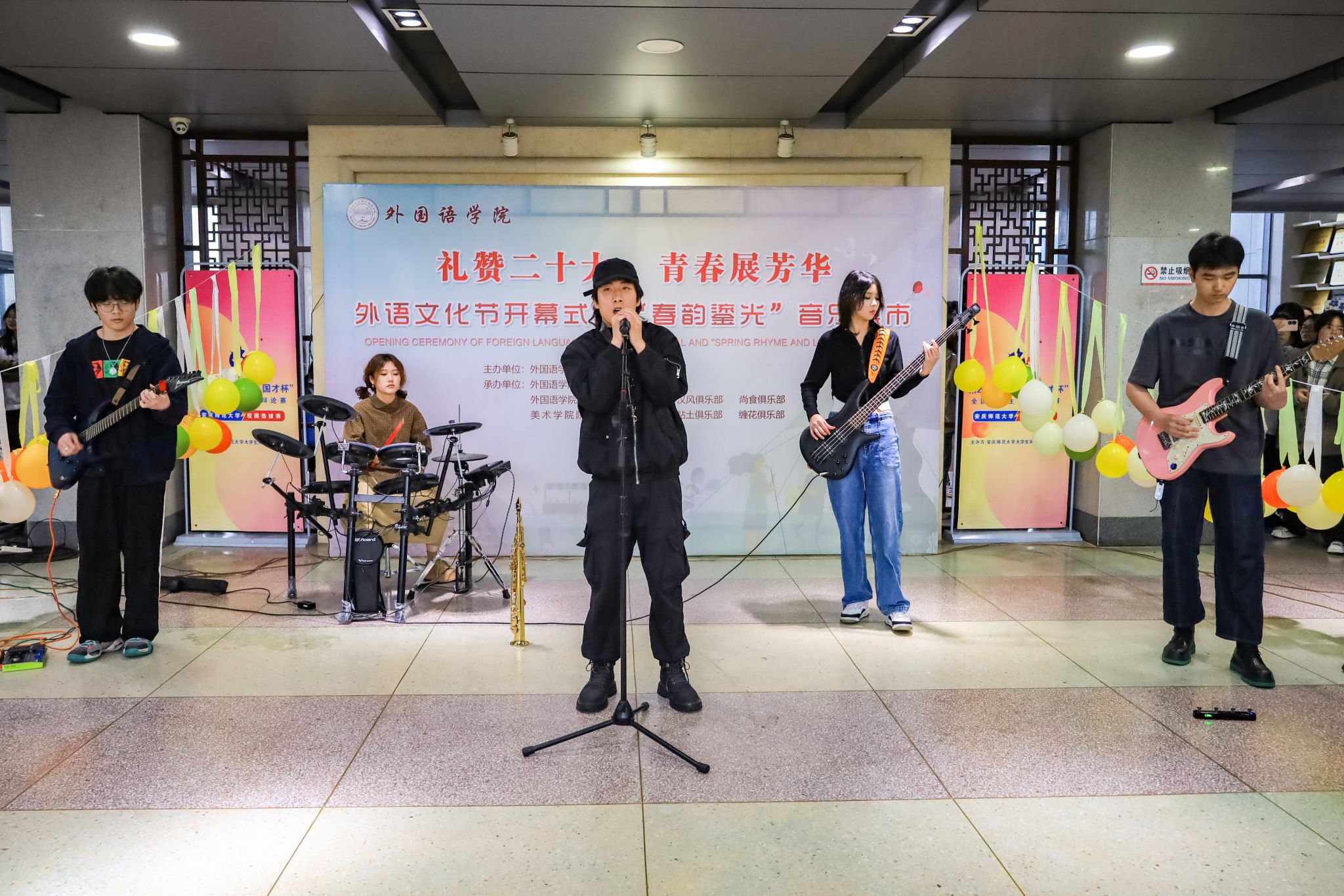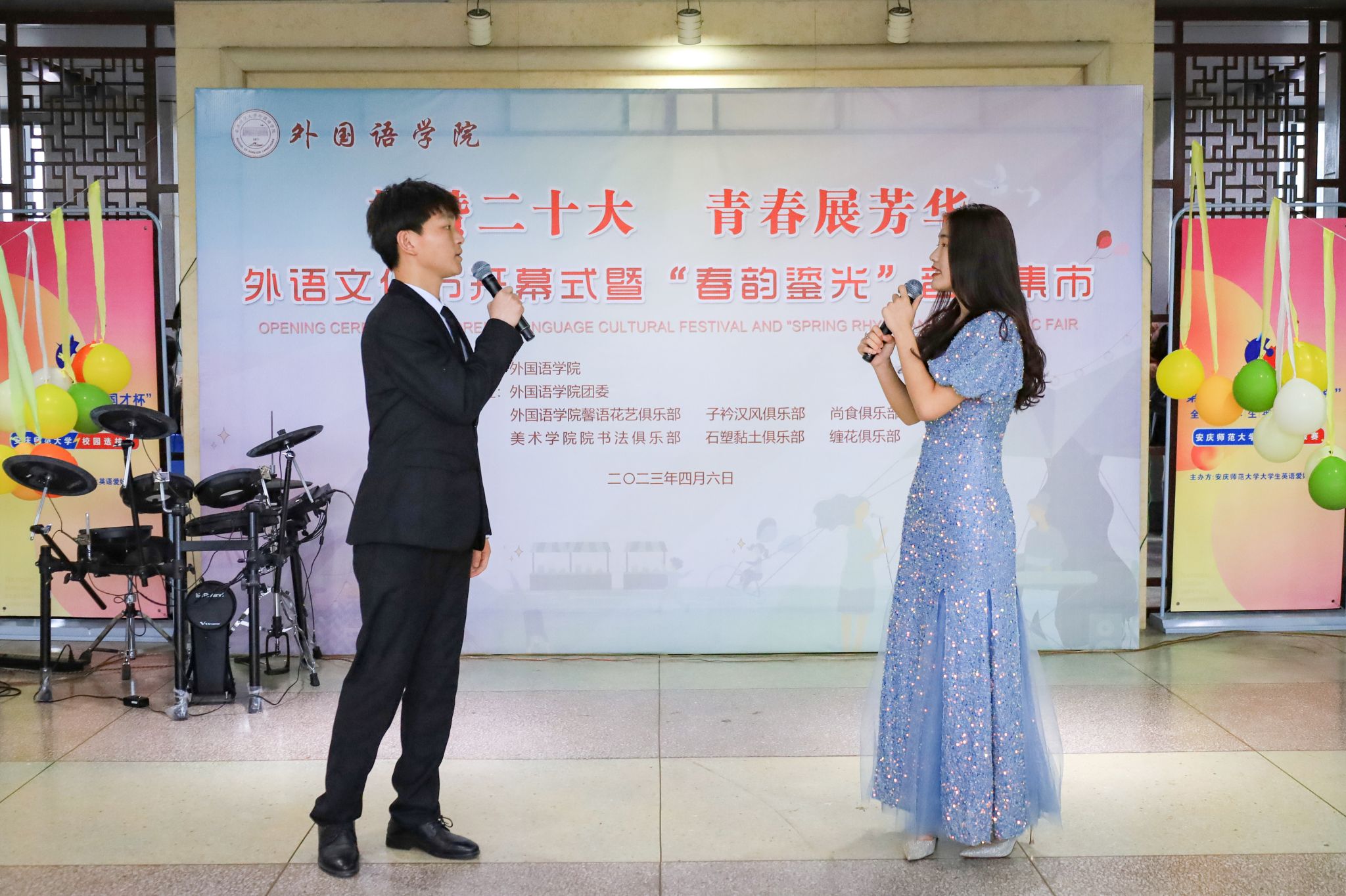 和美术学院联合举办“春韵鎏光”音乐集市,在校园营造浓厚外语学习氛围,推动中外文化交流融合,促进学生身心综合素质全面发展。学院党委书记李亦亮、院长王先荣等党政领导人员、学工组全体教师与600余名学生一同参与活动,共享这场“文化盛宴”。