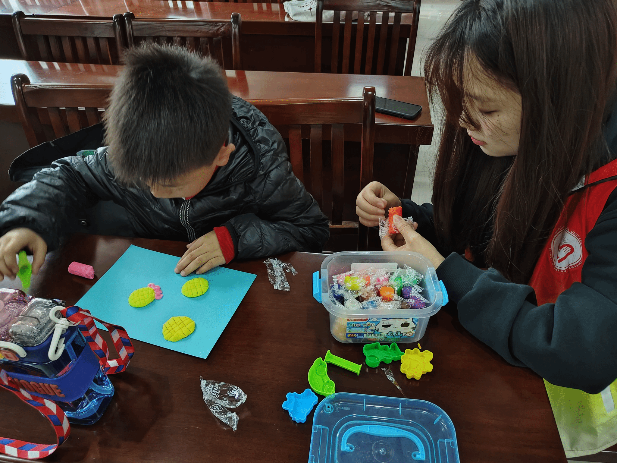 活动伊始,志愿者们以周围环卫工人、教师等深入人心的形象为切入口,引领孩子们广泛思考劳动精神的内涵,体会劳动者的不易;活动过程中,为了提升孩子们对劳动的兴趣,同时培养动手能力和创造力,志愿者同孩子们开展了劳动主题手工橡皮泥制作活动,在志愿者的悉心指导下,孩子们发挥丰富的想象力,兴致勃勃的进行手工创作,活动室里充满了欢声笑语。“我用橡皮泥做了一个勤劳的蜜蜂,我要把它送给我妈妈,她辛苦了!”看着自己的创意成果,小朋友们体会到了满满的收获和喜悦。