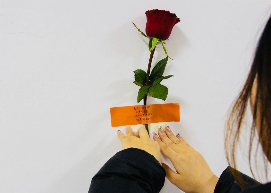为女生们准备了一场惊喜满满的“浪漫展览”,从一楼大厅到楼梯、走廊,数百支红玫瑰与写有祝福语的便签条被张贴在学院的各个角落,展示着属于这个特别节日的浪漫。