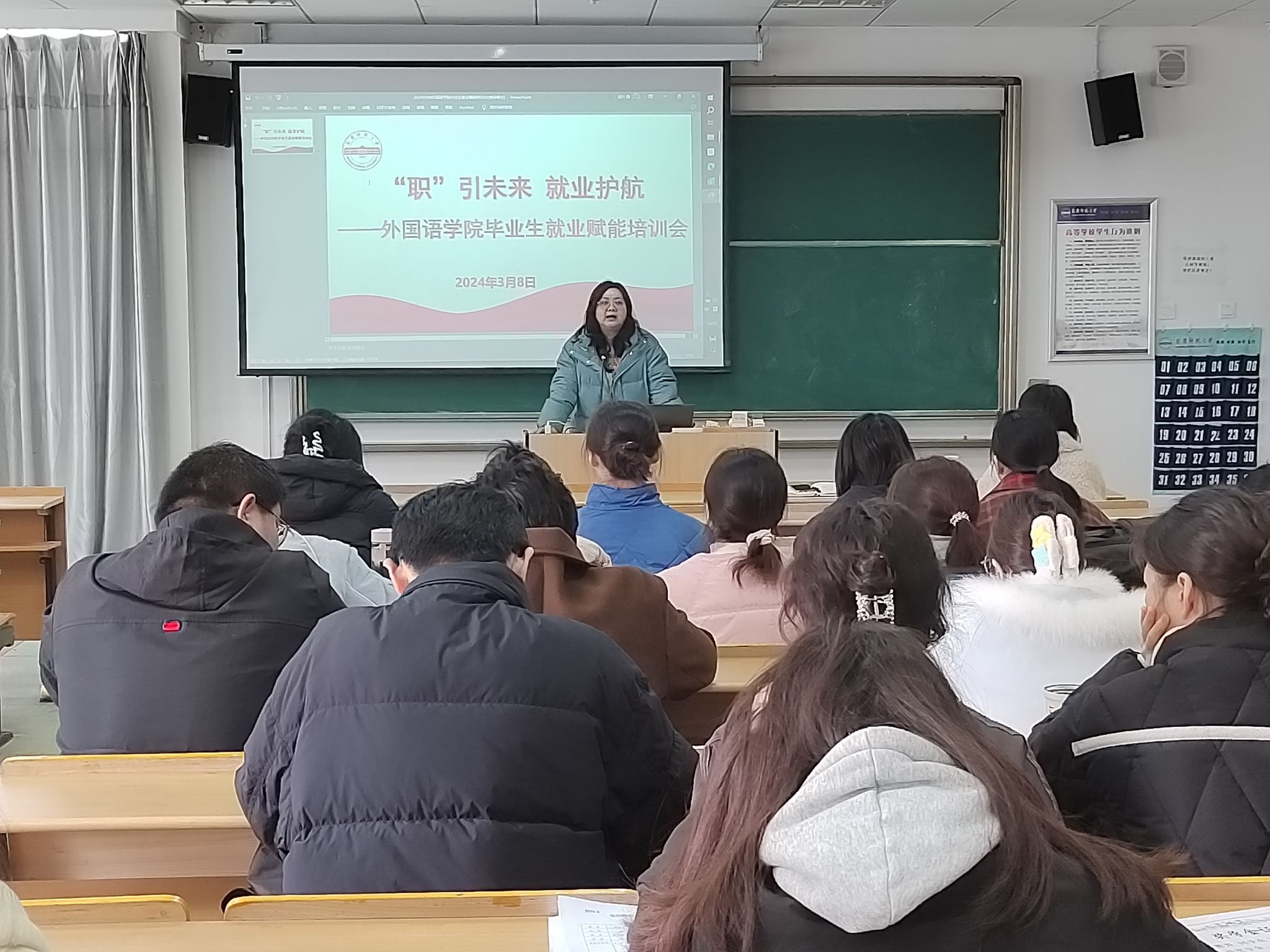 于E320举办毕业生就业赋能培训会,学院党委副书记何媛君,2023届毕业班辅导员张沐阳老师、2024届毕业班辅导员及全体毕业生参加了本次培训会,会议由谢小雨老师主持。