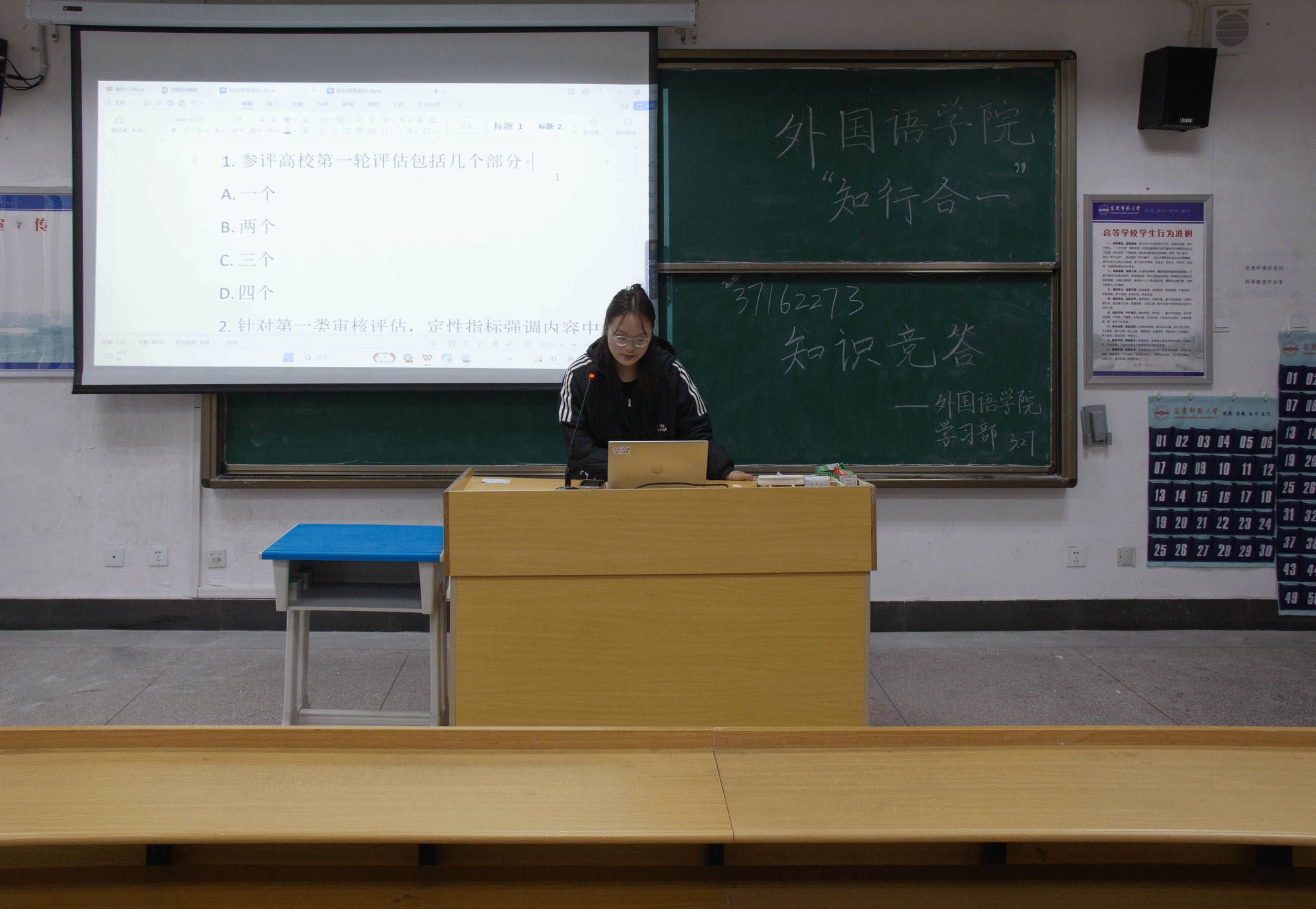 在E314举办“迎评估·知行合一”知识竞答活动。本次活动面向全院学生,旨在向广大学生普及审核评估知识,激发学生们的学习热情,促进校园文化建设,营造迎评促建的良好氛围。