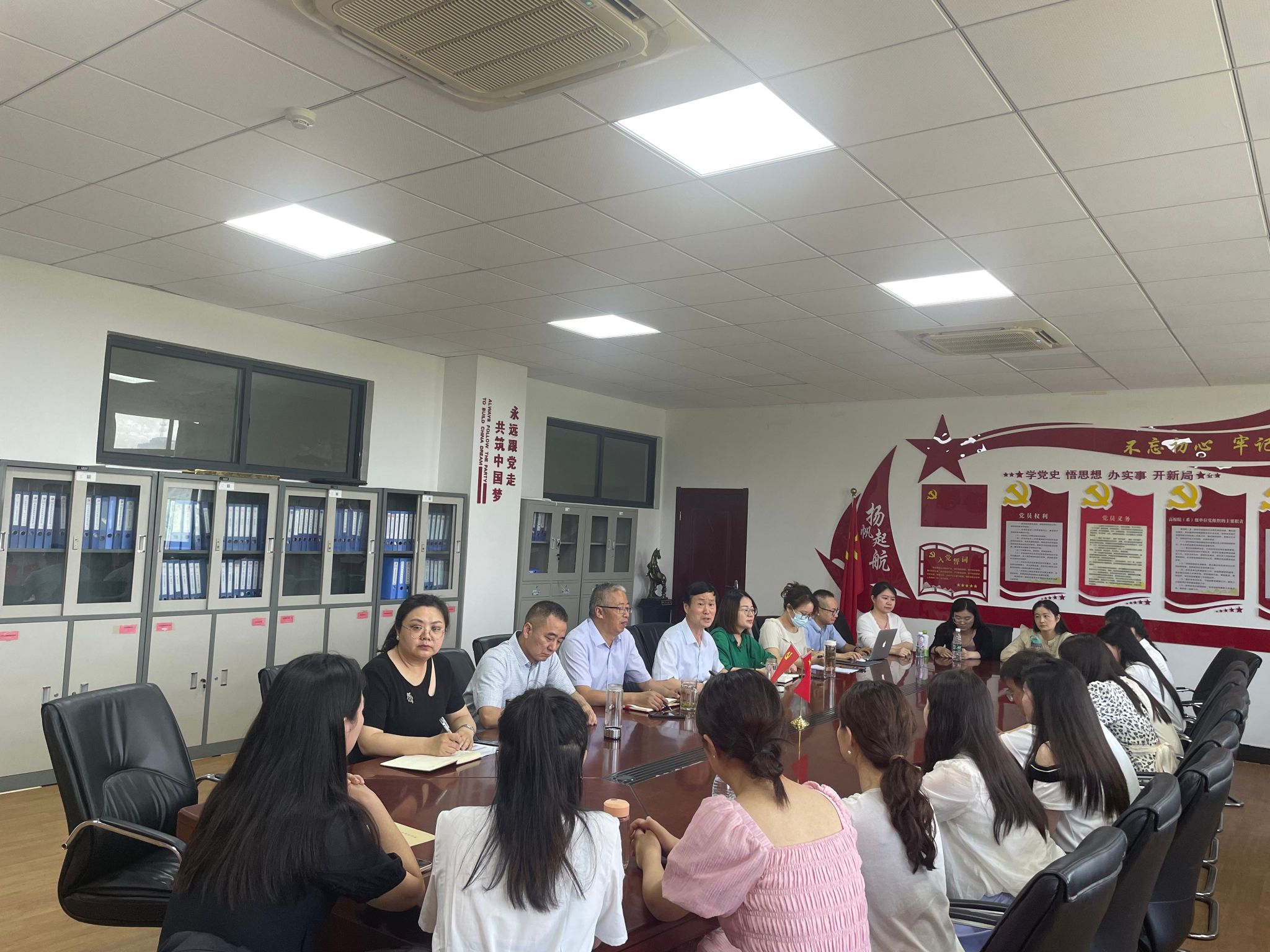 在E304会议室召开了2024届毕业班研究生座谈会。学院党委书记李亦亮,院长王先荣等全体党政领导班子成员、部分教师代表出席会议,会议由党委副书记何媛君主持,研究生毕业班全体同学参会。