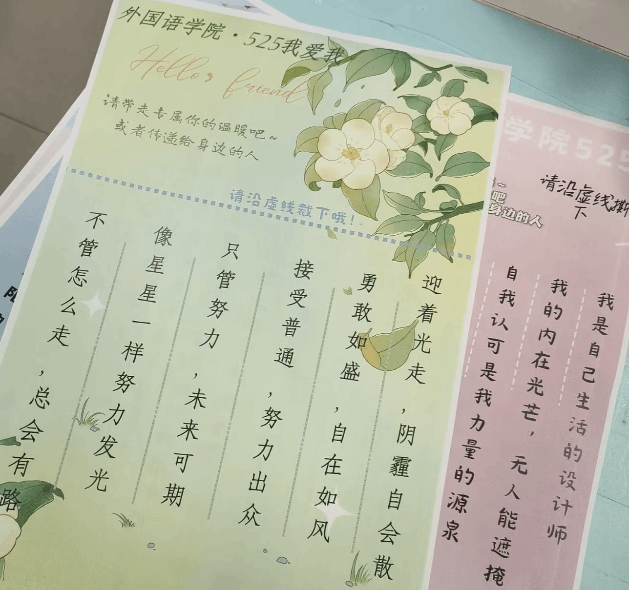 举办“心晴便签”传递活动,学院每层楼道和部分学生公寓楼宇最显眼的墙上都贴着“力量语录”,每张便签上都写着富有激励意义的话语,学生们通过撕下善意的话语得到鼓励,拥抱美好的学习与生活。