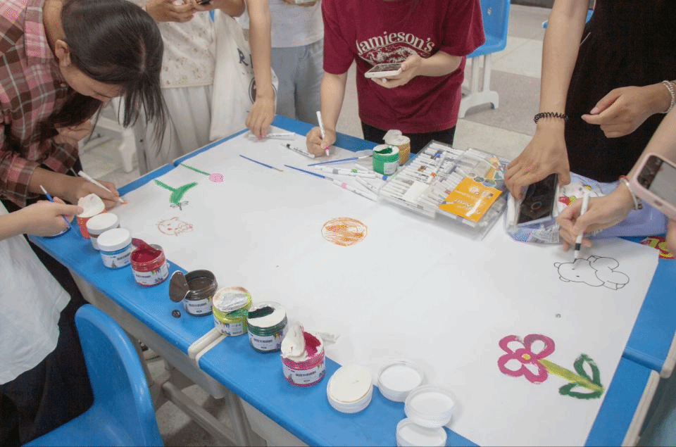 在社区举办“向阳而生,心生美好”情绪调色盘活动,学生们在“心灵图景”中自由创作,用画笔表达情绪,与美好同行。