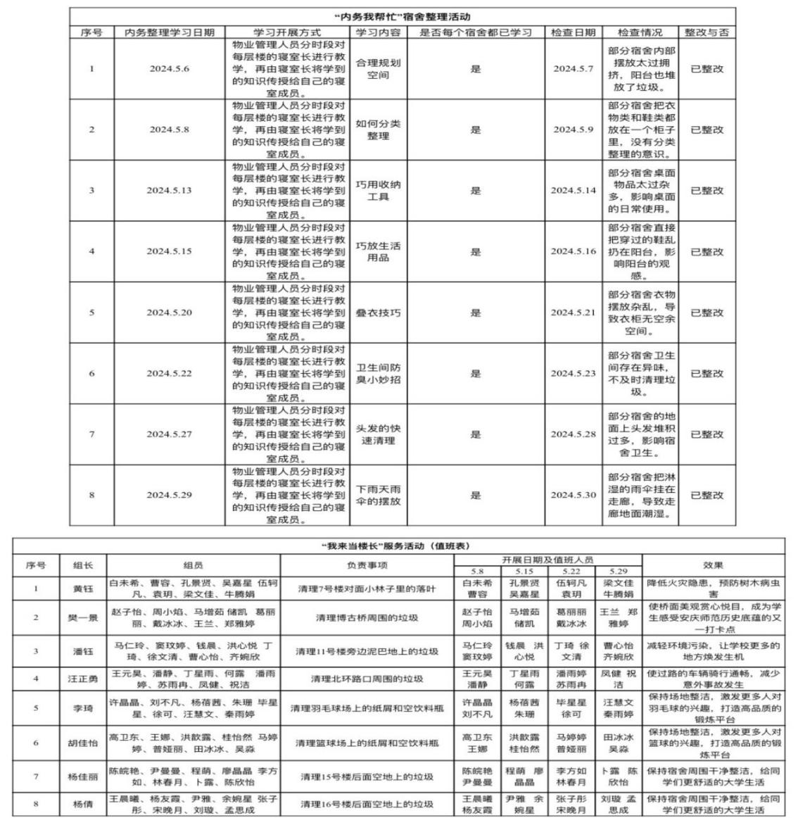 还开展了“大家筑小舍,小舍出大家”现场服务活动,活动形式多样、内容新颖,包含“宿舍安全知识知多少”宣传活动、“我来当楼长”第二课堂活动、“内务我帮忙”宿舍整理活动、《海角