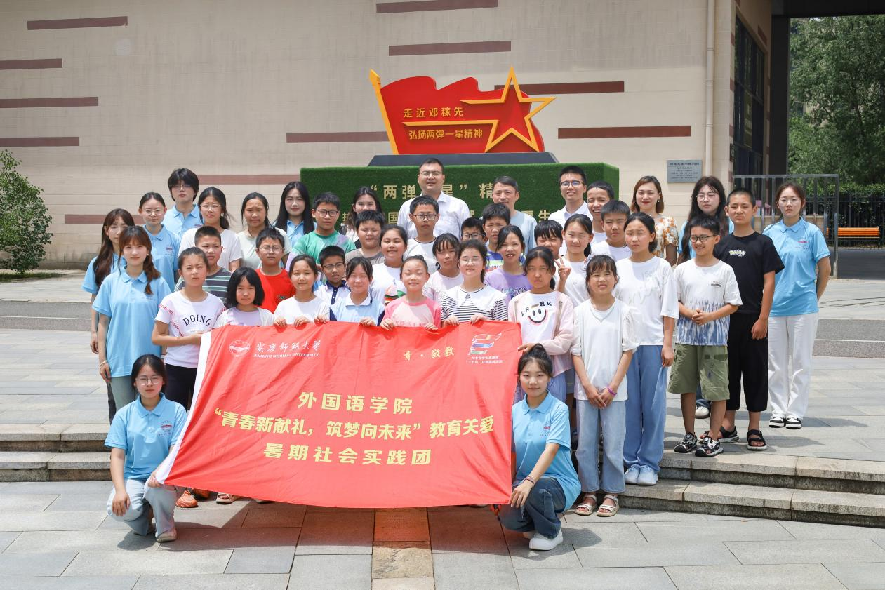 “青春新献礼 筑梦向未来”教育关爱实践团在怀宁县邓稼先生平陈列馆召开暑期“三下乡”实践活动开班仪式暨破冰活动。团县委书记安奕、邓稼先生平陈列馆馆长潘启和、团县委青农青工部部长叶俊、海角