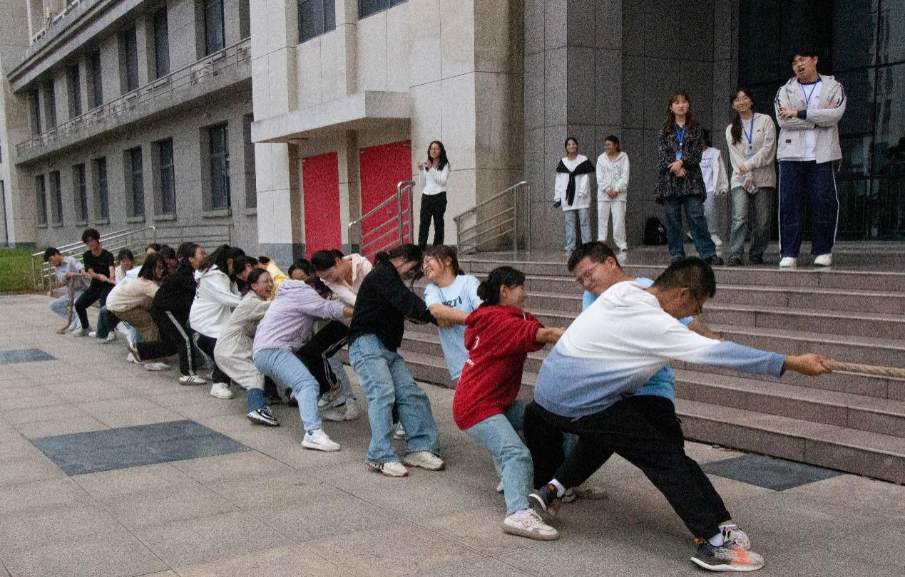 在学院南门举办“凝绳聚力,以体强心”趣味拔河比赛,海角