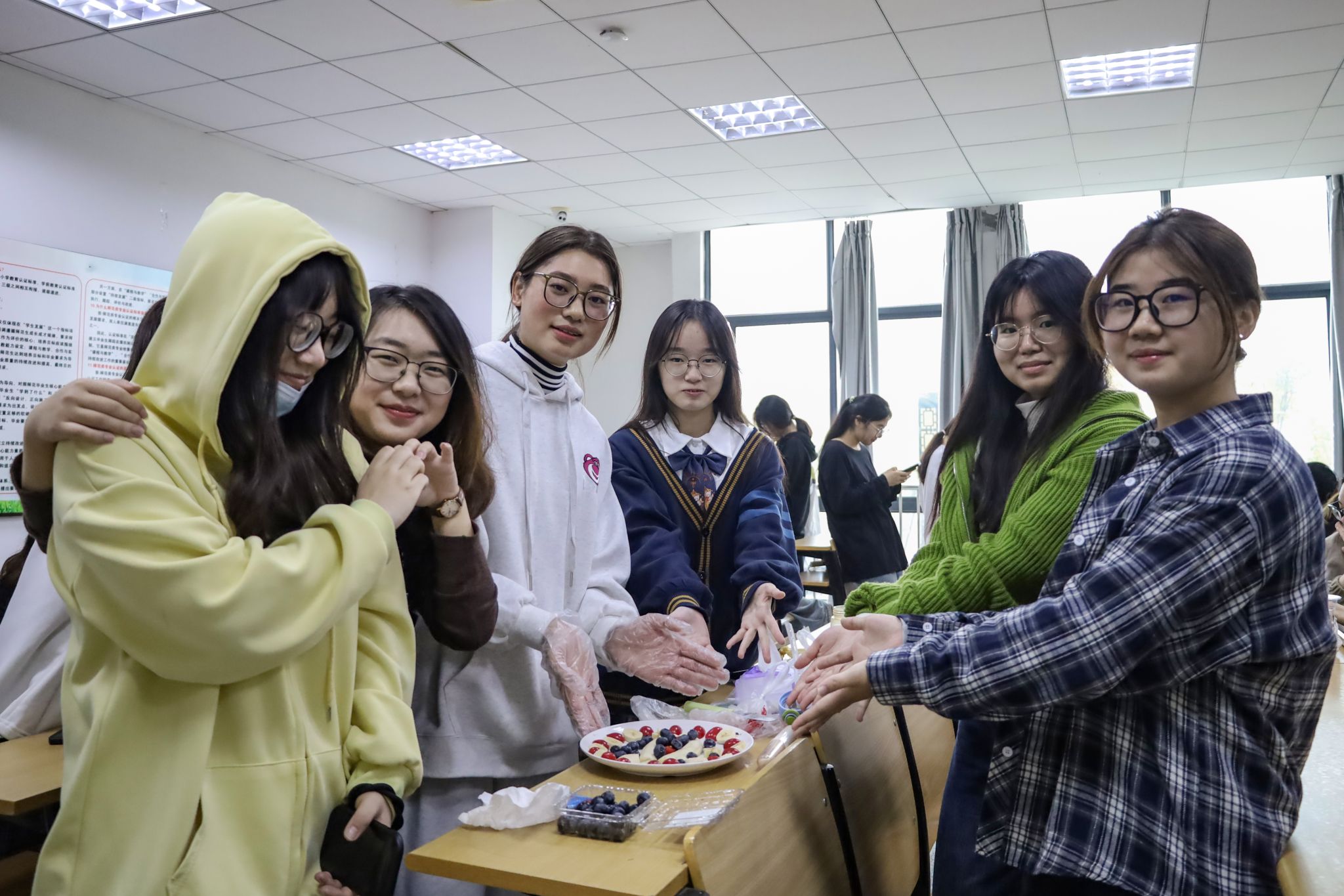 在E104教室和E106教室举办创意水果拼盘比赛,150余名学生参与比赛。