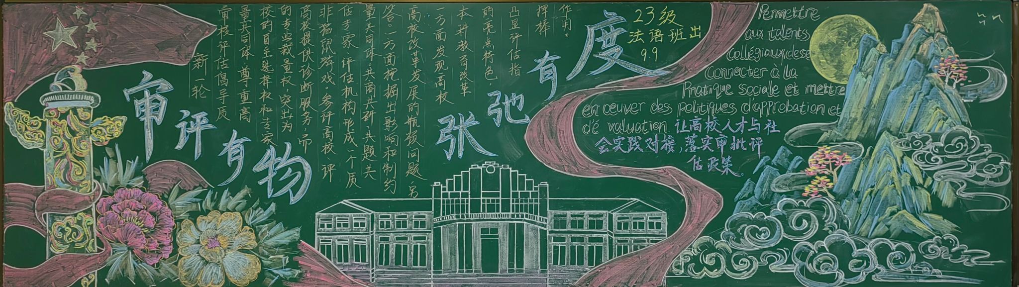 开展以“以评促建 以评促改”为主题的本科教育教学审核评估黑板报评比活动,旨在遵循教育规律,聚焦本科教育教学质量,培养德智体美劳全面发展的社会主义建设者和接班人。