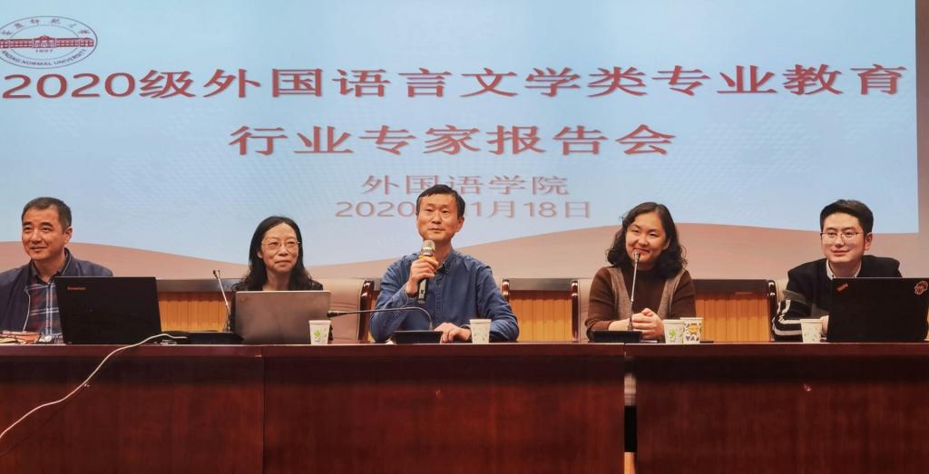 2020级外国语言文学类班级辅导员和全体同学参加了报告会,会议由王先荣主持。